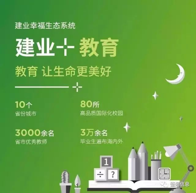 地產領域,目前建業產品已遍布18地市,30個縣,在建項目51個,新行的輕資產戰略也為其省域化帶來再縱深;物業領域,建業已服務14萬戶家庭,服務面積超2300萬平方米;投資39億的建業足球更有超強帶動效應,建業擁有球迷300萬,部會員注冊用戶15萬;建業+教育亦是亮點,現已布局10個省(市),80所高品質的國際化校園,擁有3000余名優秀教師;除此之外,兼業農業、建業酒店;……