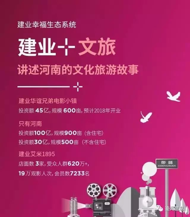新動作之外,已有布局也逐漸落地。彼時,胡葆森曾聯手王中軍共同打造“建業?華誼兄弟電影文化小鎮項目”;牽手王潮歌將“只有”系列落戶河南;建設洛陽正平坊、建業艾米1895項目等。各項目亦在逐步落地。目前,建業華誼兄弟電影小鎮投資額45億,規模600畝,預計2018年開業;“只有河南”系列投資額達100億,規模900畝(含住宅);建業艾美1895,店面數亦已擴至3家,受眾人數620萬,目前已有19萬觀影人次,會員數7233名。