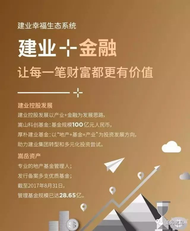 強勢助力下,建業金融領域成長迅速。目前,建業金融板塊目前由建業控股發展、嵩岳資產共同組成。嵩山科創基金規模如今擁有約100億元人民幣規模,嵩岳資產管理基金規模已近29億。