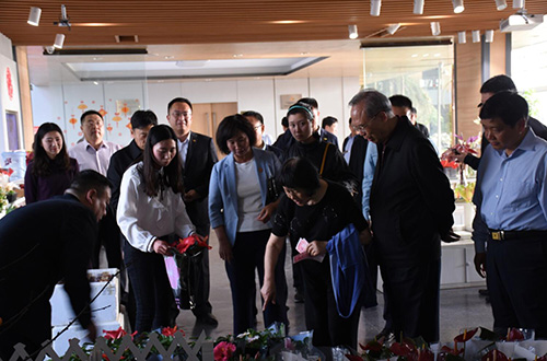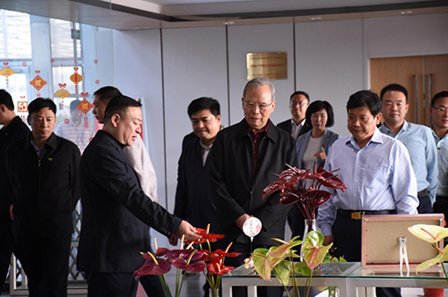 在花卉展示區,曾培炎夫人對于綠色基地培育的花卉夸贊有加,并現場親自購買了兩盆丹麥木槿和兩盆長壽花,要帶回家中欣賞。