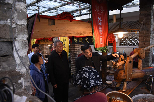 在建業大食堂,曾培炎一行詳細的參觀檔口,不時的與商戶聊天、握手、交談,夸贊這種模式的創新具有時代意義,并說這種綜合體模式和業態應該放到北京去。臨別時,曾培炎風趣的說,這個地方很有特色,他很喜歡,今年鄢陵花博會召開的時候他還要來綠色基地賞花卉、品美食。