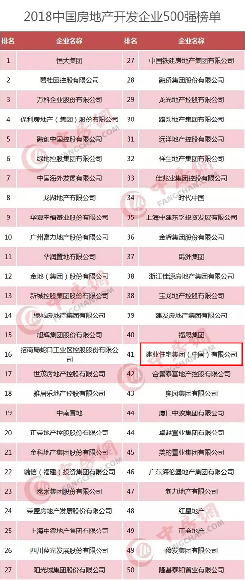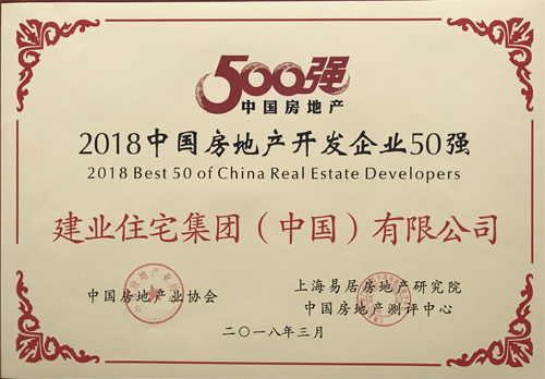 建業(yè)集團(tuán)榮獲“2018中國房地產(chǎn)開發(fā)企業(yè)500強(qiáng)”第41名