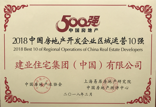 建業(yè)集團(tuán)榮獲“2018中國房地產(chǎn)開發(fā)企業(yè)區(qū)域運(yùn)營10強(qiáng)”第1名