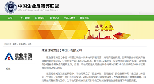 建業集團加入反舞弊聯盟,力推陽光文化建設