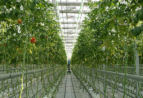 4月8日,在位于河南省鄢陵花木旅游產業集聚區建業綠色基地內,工作人員正在智能聯棟溫室內采摘荷蘭彩色番茄(圖2)。