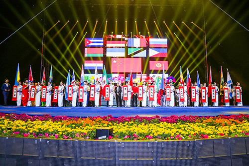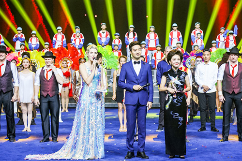 開幕式由央視著名主持人海霞、河南電視臺(tái)主持人林泉,法國、美國雙國籍主持人金小魚擔(dān)當(dāng)主持。全國政協(xié)常委、中國文聯(lián)副主席、中國雜技家協(xié)會(huì)主席邊發(fā)吉,中國雜技家協(xié)會(huì)分黨組書記、駐會(huì)副主席、秘書長王仁剛等國內(nèi)外雜技專家;河南省政協(xié)副主席周春艷、河南省人大原副主任張世軍等省領(lǐng)導(dǎo);濮陽市委書記宋殿宇,濮陽市委副書記、市長楊青玖,濮陽市委副書記邵景良、濮陽市人大主任徐蘭峰、濮陽市政協(xié)主席鄭大文、以及濮陽市四大班子領(lǐng)導(dǎo);建業(yè)集團(tuán)董事長胡葆森、河南省雜技集團(tuán)董事長付繼恩等出席開幕式儀式。人民日?qǐng)?bào)社、新華社、經(jīng)濟(jì)日?qǐng)?bào)社、中國藝術(shù)報(bào)等國家級(jí)、省級(jí)、市級(jí)媒體領(lǐng)導(dǎo)和記者共同見證盛事。胡董與邊發(fā)吉、王仁剛、周春艷、宋殿宇、楊青玖共同啟動(dòng)2018中國濮陽國際雜技藝術(shù)節(jié)開幕儀式。
