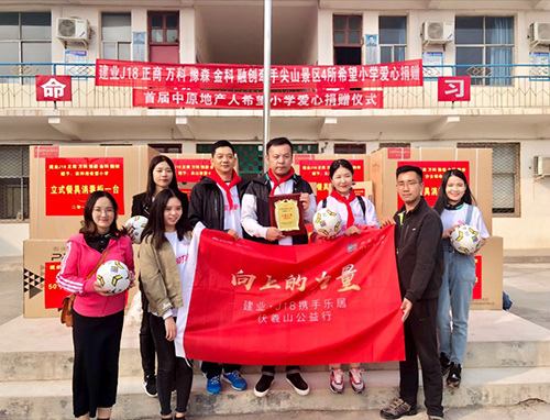 2018年10月17日,建業集團品牌管理部聯合建業·J18項目參與“向上的力量”首屆中原地產人公益行活動,攀登新密伏羲山,因愛跋涉,前往田種灣希望小學,為尖山景區4所希望小學捐獻教學物資。