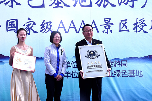 活動現場,許昌市旅游局副局長吳驗兵宣讀了國家級4A景區授牌公告并頒發“國家級4A景區”牌照。隨后,主席臺領導一同上臺,將金沙導入“國家級AAAA旅游景區”啟動臺,在眾人見證之下,共同開啟了標志著鄢陵建業綠色基地璀璨未來的鎏金時刻。