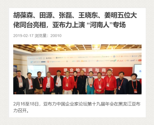 田源:希望河南企業家多為亞布力論壇做貢獻