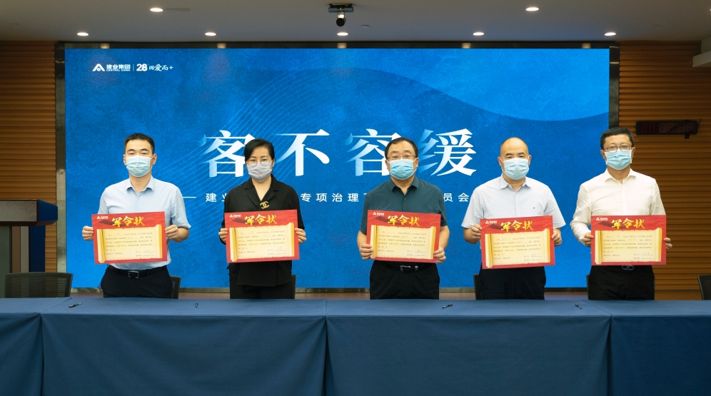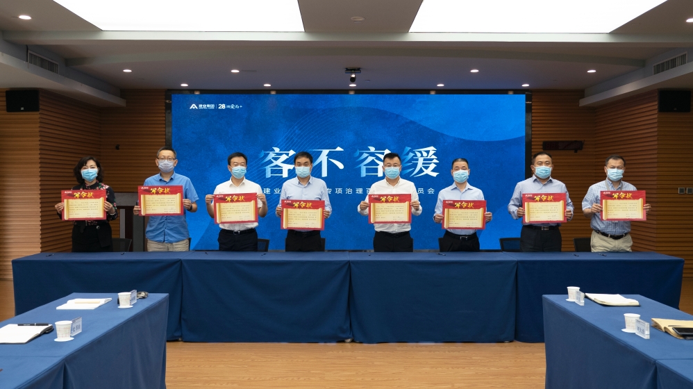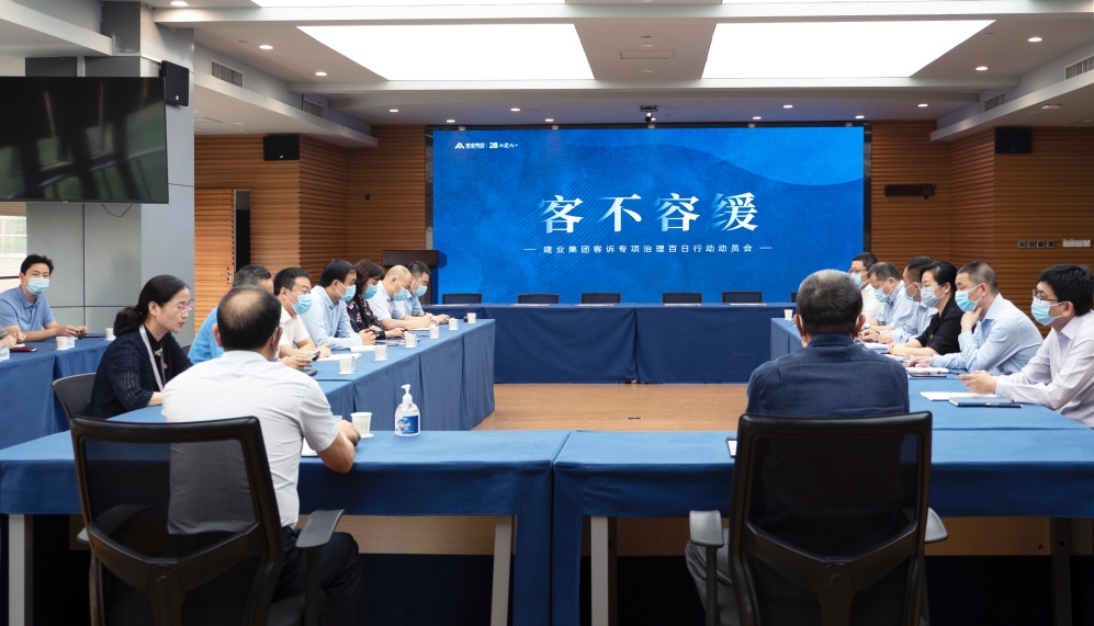 2020年7月24日,建業集團召開“客不容緩——建業集團客訴專項治理百日行動”動員會,建業集團董事長胡葆森、聯席董事長劉衛星、執行總裁王俊等集團領導,以及八大業務集團、五大區域負責人參加了會議。