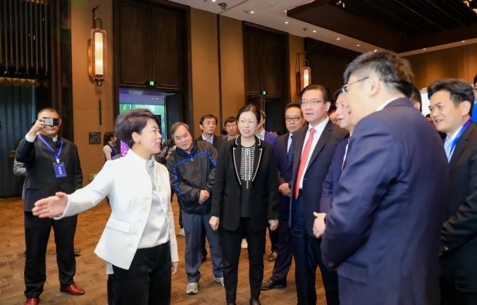 會議期間,文化和旅游部黨組成員王曉峰在中國旅游研究院戴斌院長引領下參觀了本屆論壇展覽館。展館中,建業電影小鎮位列“藝術引領夜游產品創新”板塊五大案例之首。王曉峰副部長與閔總親切交談,詢問了項目開發及運營情況。