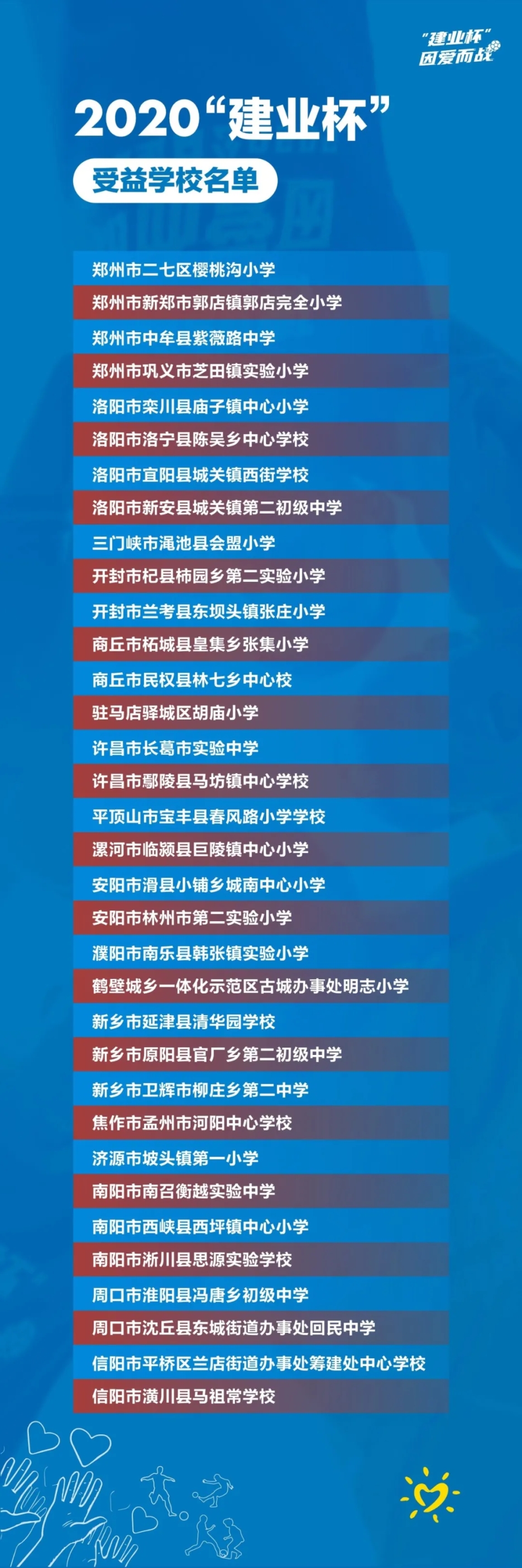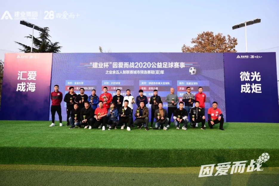 從娃娃抓起,從基層抓起,從基礎抓起,從群眾性參與抓起,夯實人才根基,這是振興中國足球的治本之舉。2018年起,建業集團按照胡葆森董事長“可推廣 可持續 可復制”的要求,首次發起“建業杯”因愛而戰公益足球賽事,堅持“足球+公益”辦賽理念,將球隊戰績與公益捐贈結合,持續推動足球運動的普及,助力河南足球事業發展。三年來,建業集團累計捐贈逾2500萬元,吸引參賽球隊676支、參賽球員9240人。今天“建業杯”迎來第100所受益學校,13萬+鄉村孩子的足球夢想得以成就與生長。因愛而戰,用“愛”,讓平凡變得偉大。