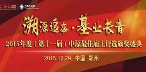 12月29日下午,由天基人才網(wǎng)聯(lián)合河南省人才交流協(xié)會(huì)等共同發(fā)起的“2015年度(第十一屆)中原最佳雇主評選”頒獎(jiǎng)盛典在楷林IFC國際會(huì)議廳舉行。
