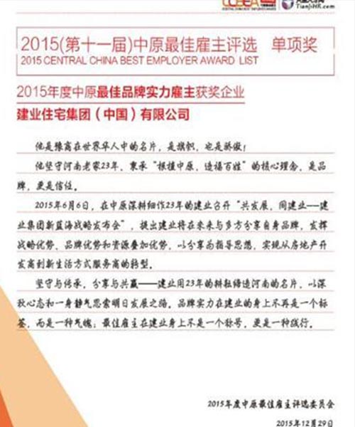 至此,集團(tuán)已連續(xù)5年獲得 “中原最佳雇主”榮譽(yù)!