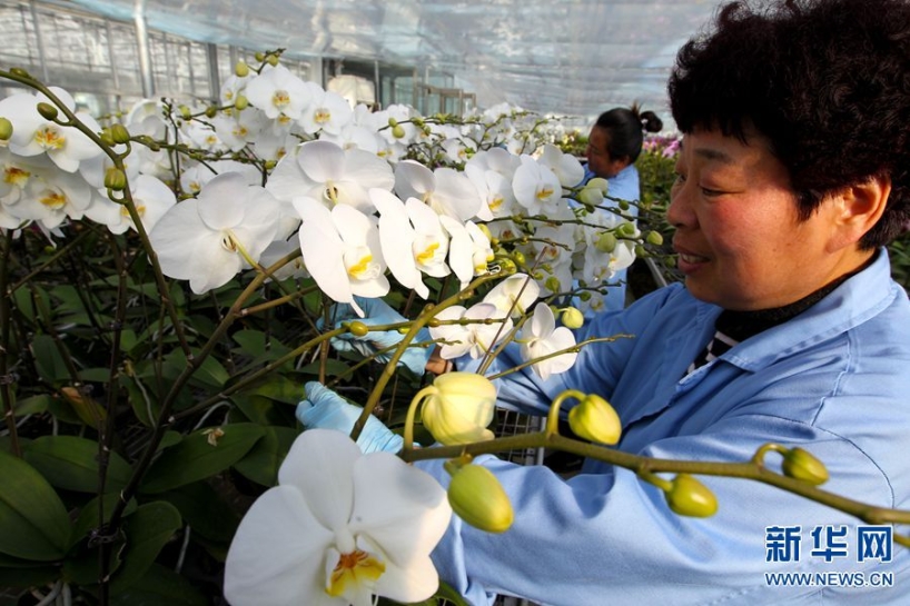 2021.1.17 河南鄢陵建業綠色基地,員工在智能聯棟溫室大棚內管理蝴蝶蘭。