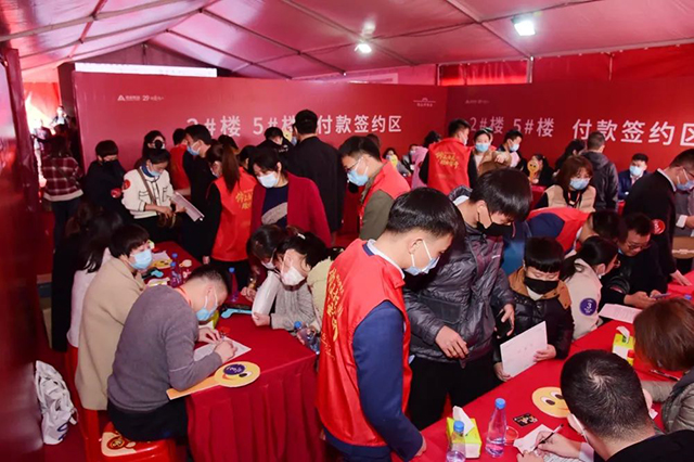 在工作人員的熱情引導下,選房活動緊張有序地進行。房源分秒遞減,機會稍縱即逝,簽約區捷報連連,銷售數據節節攀高。