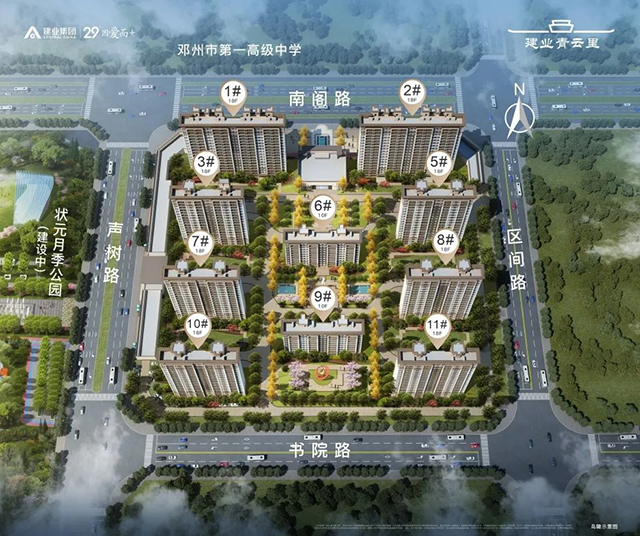 建業青云里以前瞻性的眼光,洞悉城市發展方向,擇址鄧州向東發展的核芯區域。項目對望鄧州一高,周邊匯集6大學校,是名副其實的學府圈;得天獨厚的狀元月季公園、明珠湖公園2大生態公園環伺;周邊繁華