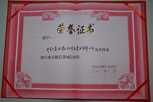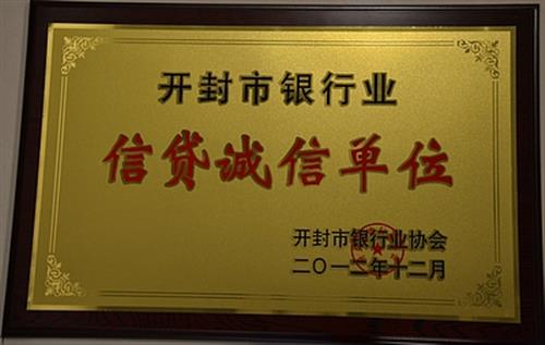 為了增強全社會的誠信意識,營造良好的信用環境,構建新型銀企關系,促進全市經濟和金融持續健康發展,根據《中國銀行業協會工作指引》、《開封市銀行業維權公約》等,開封市銀行協會受會員單位委托,按照評選程序,通過精心組織、嚴格條件、認真審核,評選出了首批“信貸誠信單位”企業。公司以較強的綜合實力位列榜單,榮獲“開封市銀行業信貸誠信企業”榮譽稱號,并被授予榮譽證書及獎牌。