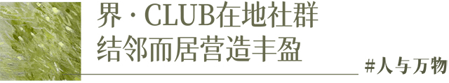 老界嶺君鄰大院獨享“界 · CLUB”在地社群,一群鮮活生命力的建業斜杠青年擔任G.O(親善生活連接者),為老界嶺業主創造豐盛旅居體驗,親子、瑜伽、太極等社群部落將在7月份啟動,未來,“界·CLUB”也將伴隨物業服務落地社區生活中,成為社區服務、度假服務的一部分。