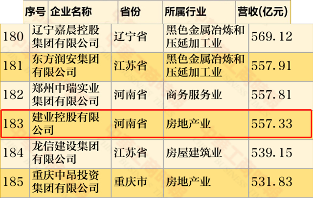 9月7日,中華全國工商業聯合會發布“2022中國民營企業500強”“2022中國服務業民營企業100強”等榜單及調研分析報告。建業集團榮膺“2022中國民營企業500強”第183位,河南共14家企業上榜。同時位列“2022中國服務業民營企業100強”第53位,較去年提升5位。