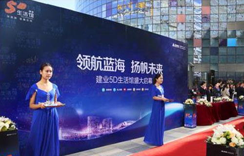 2015年10月9日上午,建業5D生活館開業儀式在鄭州建業五棟大樓隆重舉行。原河南省人民政府省長助理盧大偉,原河南省委組織部常務副部長王笑南,原河南省發改委主任林景順等省市領導,建業住宅集團(中國)有限公司董事長胡葆森,中城聯盟輪值主席、江蘇一德集團董事長陳俊,金螳螂董事長朱興良,建業地產CEO陳建業,建業集團執行總裁劉大勇,建業集團副總裁、建業文化旅游地產公司總經理閔閔,建業集團助理總裁、建業商業地產公司總經理劉麗等出席現場。此外,儀式現場還迎接了來自中國企業家俱樂部、中城聯盟、嵩山會、銀行及金融界、文化界名人、建業商業戰略聯盟商家等諸多代表,以及建業集團高管、省內外媒體、自媒體和社會各界友人。近三百位嘉賓歡聚一堂,共同見證了這一璀璨奪目的時刻。