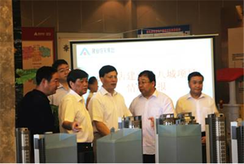 7月15日上午,中共河南省委副書記、省長謝伏瞻、省政府秘書長郭洪昌等一行蒞臨駐馬店建業?十八城項目視察指導工作。駐馬店市委書記余學友、市長武國定等市領導,集團總裁張春峰、副總裁胡冰、副總裁兼駐馬店公司總經理康凱、助理總裁安豐彬、物業公司執行總經理朱偉麗等全程陪同。