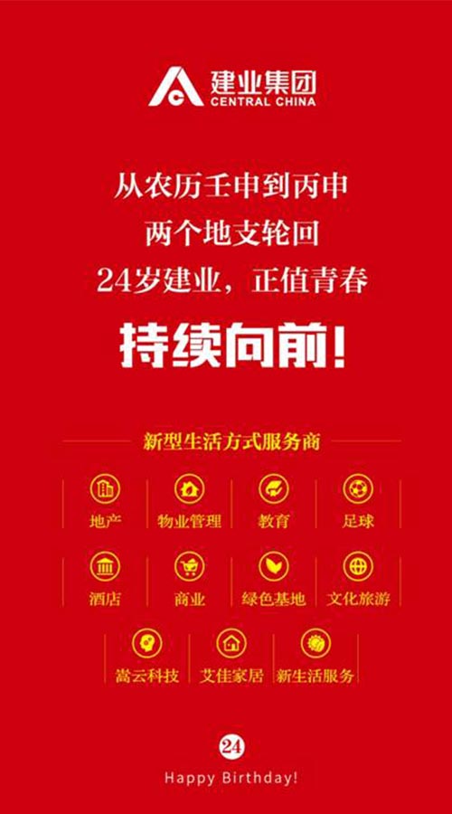 建業二十四歲,感謝有你,我們對過去充滿驕傲和感恩,對未來充滿信心和希望。